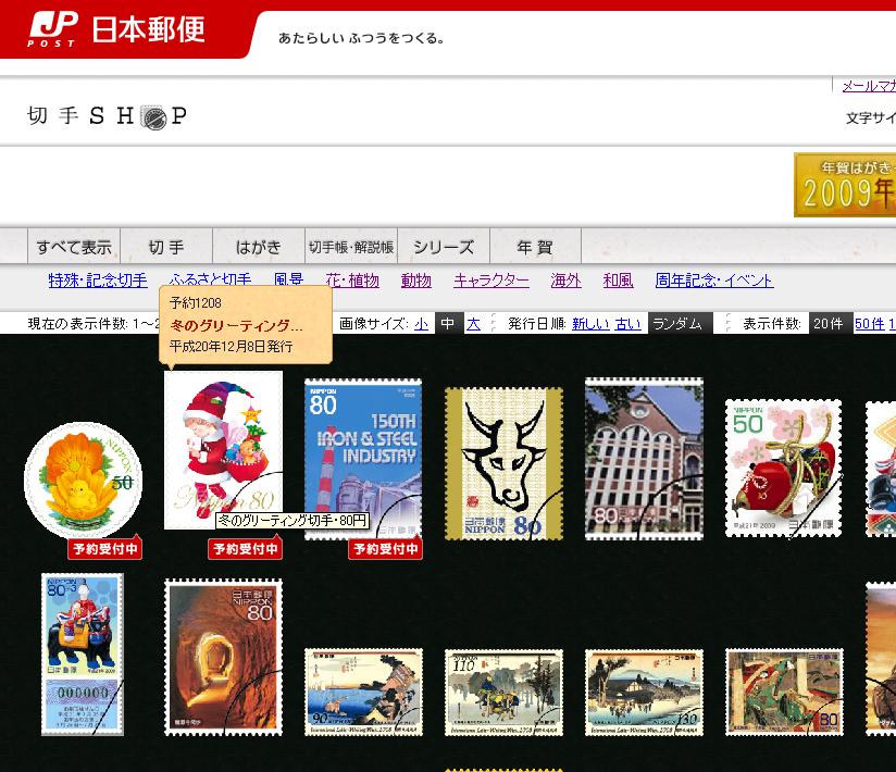 このサイト、すごいです~!! 画面が見やすいし、レイアウトが親切で可愛い♪ 画像サイズが変えられたり、「和風」「花・植物」というようなテイストごとの分類も! 古い切手は買えないようですが、じゅうぶんですよね。