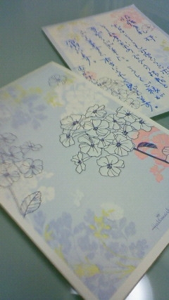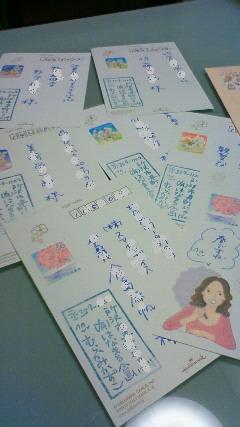 ハガキは1枚だけ弊社のオリジナル(右前の似顔絵入りのもの)で、あとはすべて市販のものにしました。