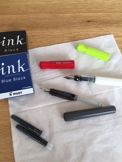 ■ 講座や研修で使うお手ごろ万年筆/パイロット社のカクノ。「インクの入れ替え作業が面倒だ」という人もいますが、わたしはわりと好きなんです。仕事の合間のちょっと気分転換に最適です。