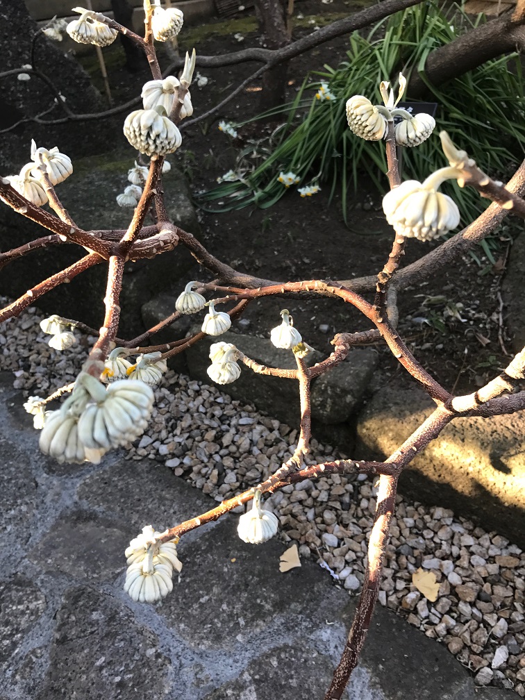 ■ ミツマタの花。湯島天神の境内(間違えました!上野公園でした。お参りしたあと上野まで歩いたことをすっかり忘れていました。)で咲いていました。和紙の原料とされる花ですね。間近で見たのは、たぶん、初めて。枝が三つに分かれているから、ミツマタというんですよね。なんだかラッキーでした!