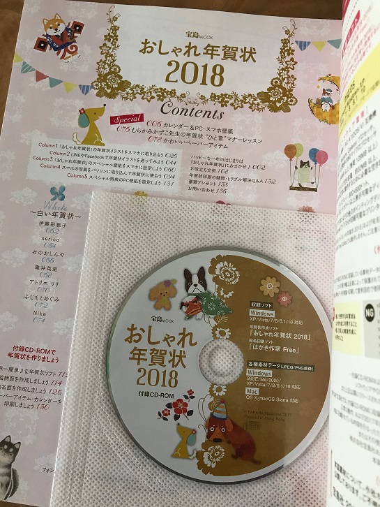 ■ 宝島社から発売中の『おしゃれ年賀状2018』(少しだけ協力させてもらいました)、近しい人たちからとても好評です。来年は戌年なので、かわいい絵柄のものも多く、見ているだけで楽しいです!
