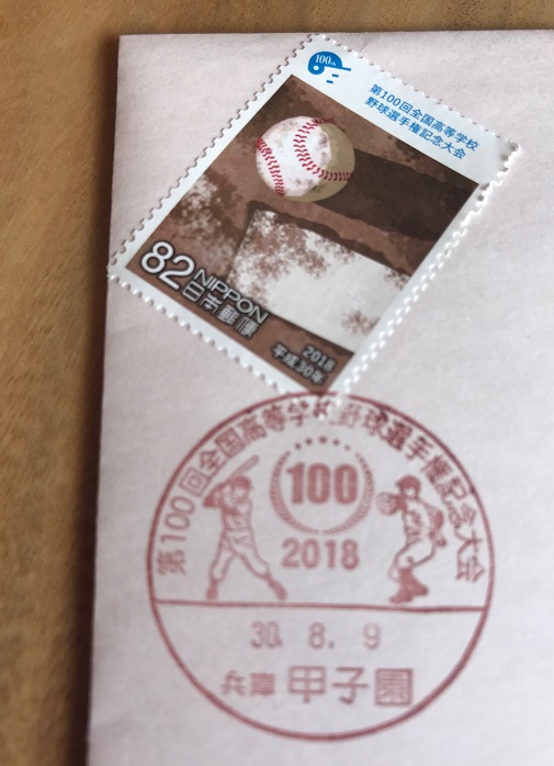 ■ 甲子園郵便局の消印です。今年限定のものでしょうね。切手が斜めに貼ってありました。