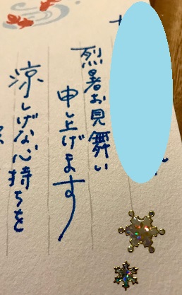 ■ 神楽坂の夜はお高い小料理屋さんでお得にランチを食べていたら、雪の結晶型のお皿でデザートを出してくれました。真夏に冬のお皿を使うなんて! さっそく手紙で真似してみました。