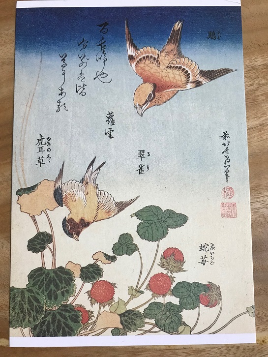 近所の公園にシャガの花がたくさん咲いています。うれしいことに、カワセミもしょっちゅう見かけます。が...、天才・葛飾北斎の目からはこんな見え方になるのですね。シャガとナデシコとカワセミ。