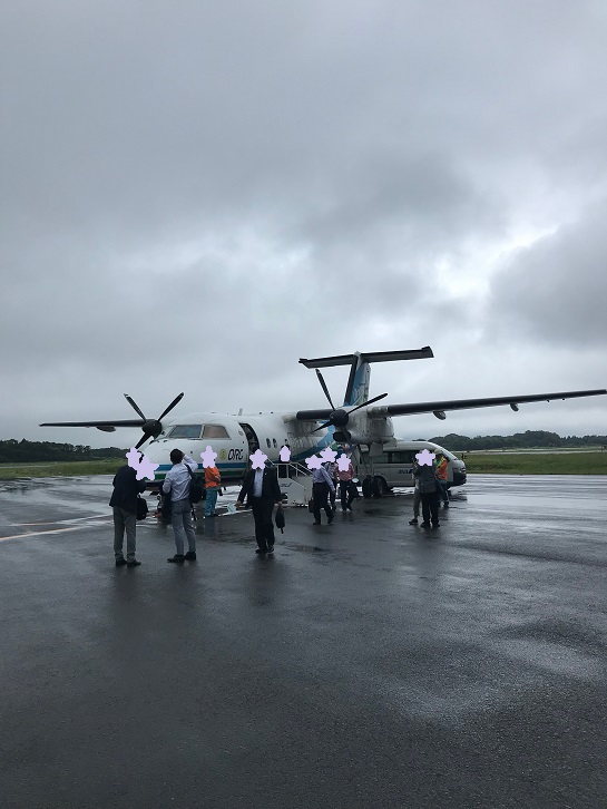 かわいいサイズの飛行機。雨でちょっと揺れました。