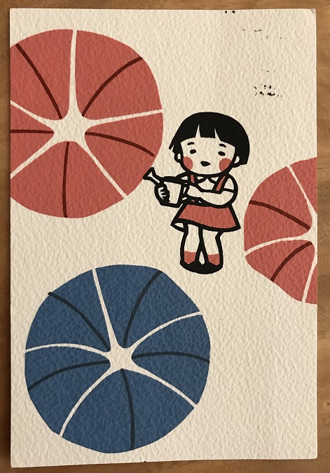 アサガオの花以上に葉を大きく描いているところに、描いた方の心境とか、何かが反映されているのかな...?