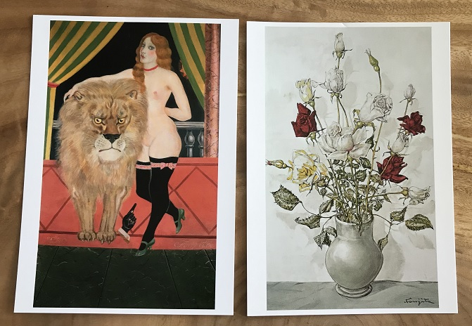 たとえば、下は、2枚とも藤田嗣治の絵です。