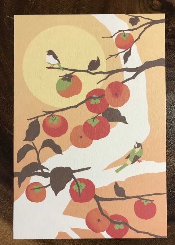 濱文様 絵てぬぐい「柿の木と小鳥」