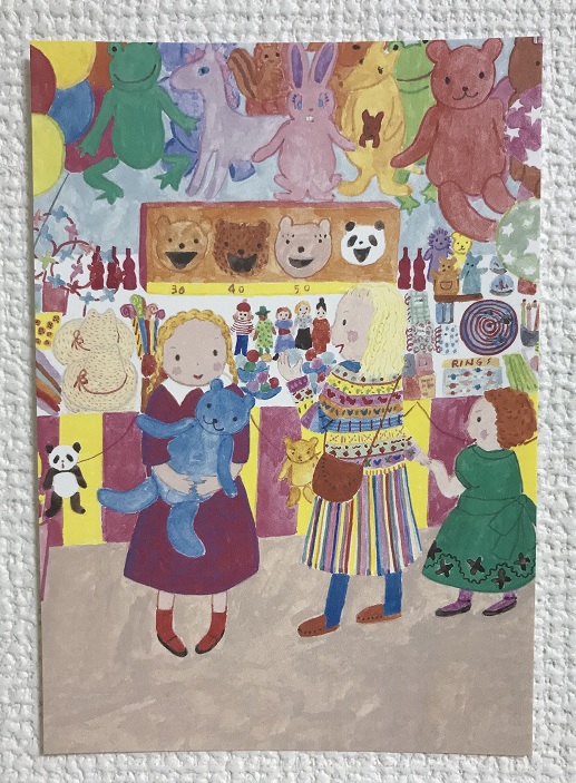 ところどころに描かれている動物やぬいぐるみの表情が愛らしい! ぜんぶ表情が異なるのですね。眺めていると、自然に頬が緩みます。