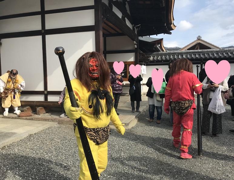 聖護院は山伏、修験道のお寺です。ほら貝の音が鳴り響く中、鬼さんが出てきてくれました。ガン泣きしている子どもがいました。かわいかった!