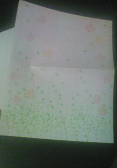ちなみに、こんな便箋でした。薄いピンクの花模様。コスモス柄ですね。季節もぴったり! かわいい♪