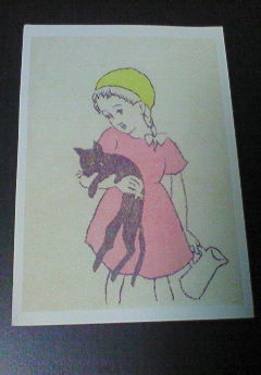 ・この友人、猫好きなんです♪(家で猫を3匹も飼っているんですよ。そして、そのうちの1匹はこのイラストと同じような、細身の黒猫ちゃん)