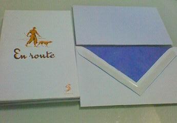 右の写真は、購入したポストカードです。お店の外観が描かれています。小さな赤いポストがチャーミング! なんとポストまで3歩! うらやましすぎ!!(笑)