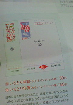 10月30日から販売開始。今年は、通常の年賀はがきに加え、くまのプーさんのキャラクター年賀だとか、うすいピンク色・うぐいす色をしたインクジェット紙、地球温暖化防止プロジェクトに5円寄付される55円のカーボンオフセット年賀はがきも販売されるようです。