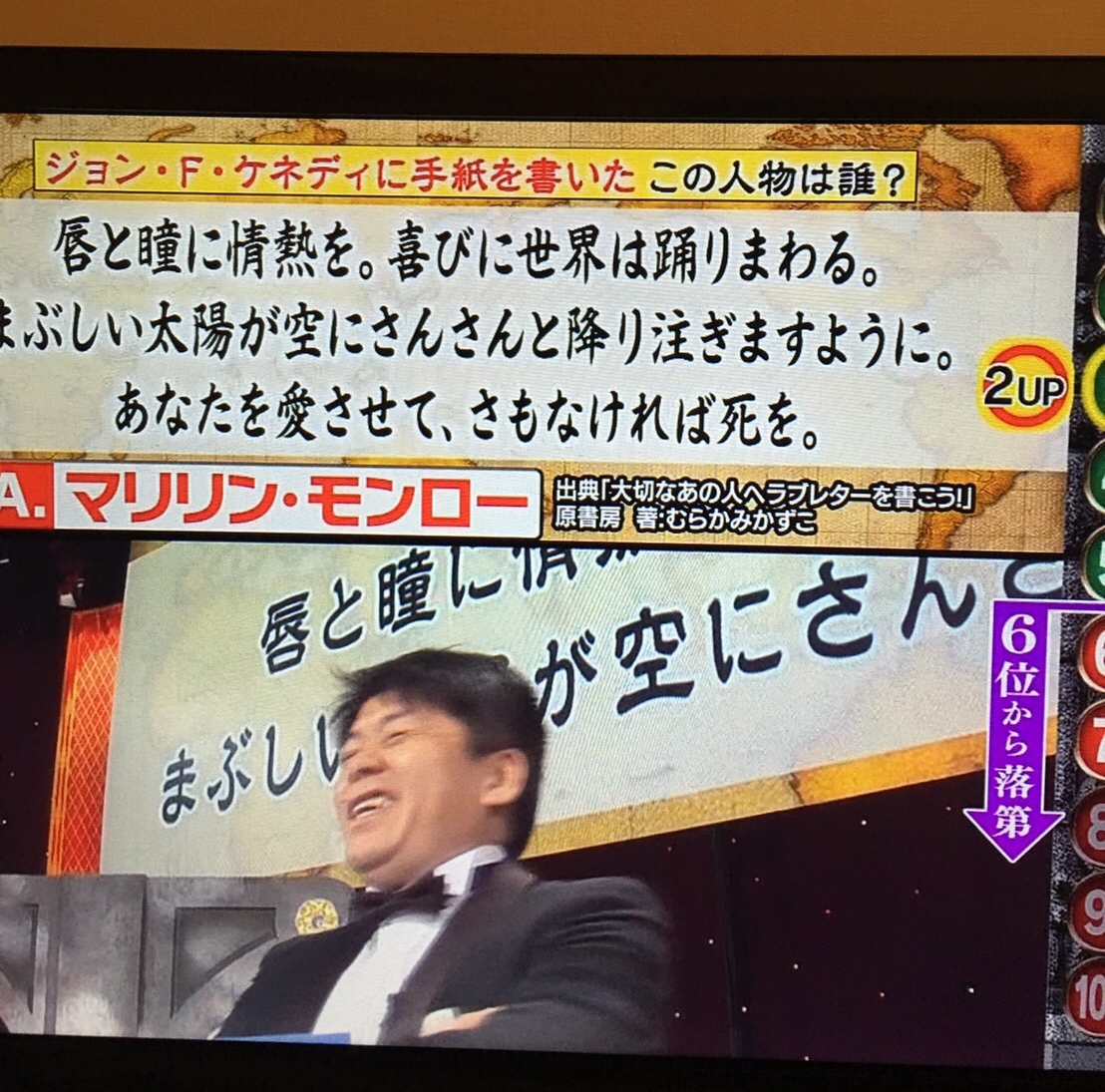 ■ 4/11(月)夜、テレビ朝のクイズバラエティ番組「Qさま」でクイズの出題協力をしました。マリリン・モンローがケネディ元アメリカ大統領の誕生日に、ロレックスの時計に添えて送った手紙です。