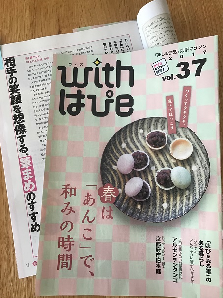 ■ 関西電力が発行しているお客さま向け情報誌『with はぴe』、取材協力しました。あんこの「豆」にちなんで、「まめ」に手紙を書いてみよう。という誌面です。ありがとうございます。
