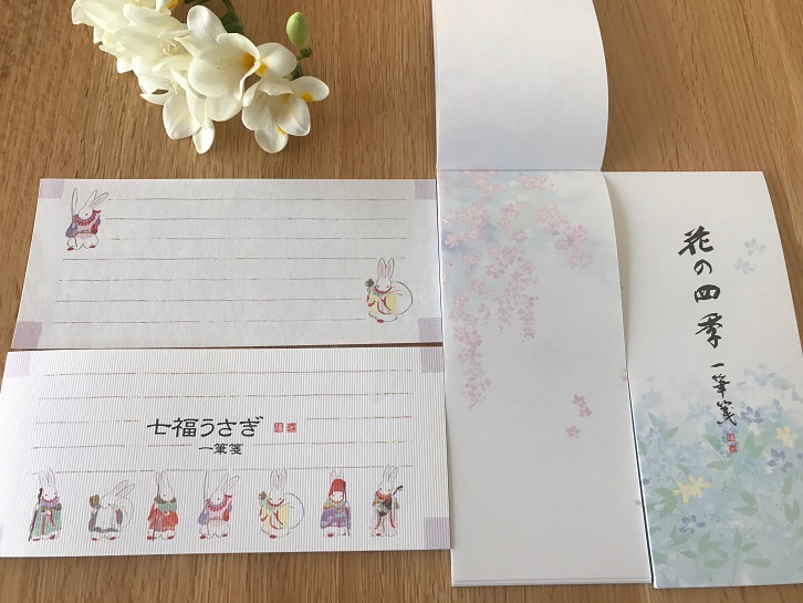 ■ 先日購入した一筆箋3種。左の七福うさぎ柄のものは10年くらい前から愛用しています。横書きできるカジュアル和テイストの一筆箋はあまりないので、貴重なのです。