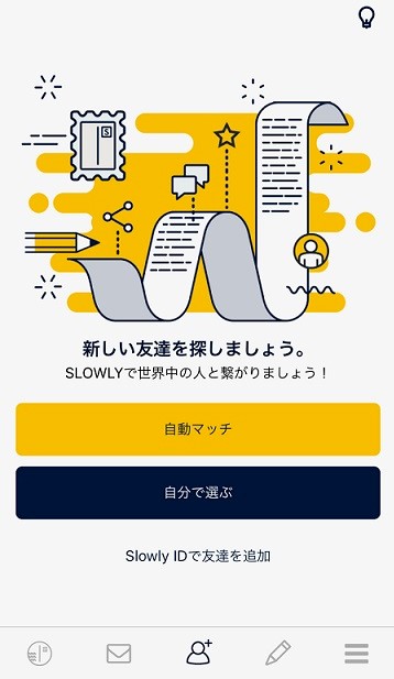 協会の講師に教えてもらった「Slowly」という文通アプリを使って、見ず知らずの人と文通(アプリでメッセージ交換)しています。