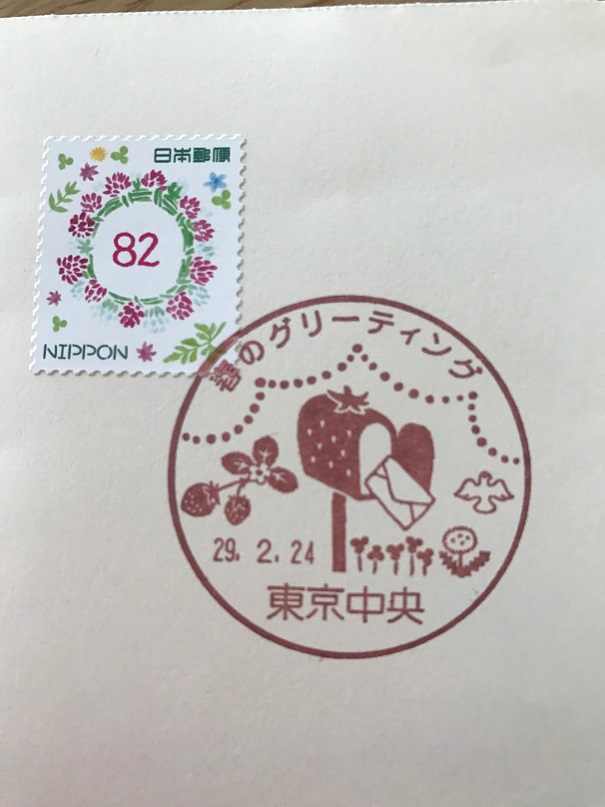 ■ 少し前になりますが、春のグリーティング切手&初日印で届きました。送ってくれたのは、当協会の認定講師:田丸有子さん。ブログご覧ください。