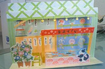 こちら、飛び出す絵本みたいに、立体型のカードなのです。金魚すくい屋さんのカード、かわいいですよね!