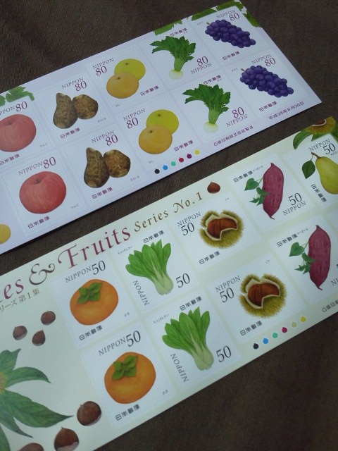 切手「野菜とくだものシリーズ」と、「季節の花シリーズ」!