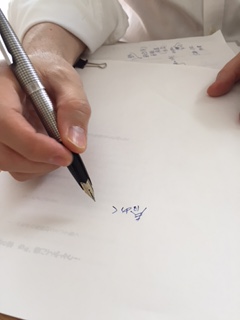 ■ 6月刊行目標で動いている本の編集者さんの手元写真。男の人の万年筆は、やっぱり目が留まります。・・といいますか、わたしはいつもジロジロ見てしまいます(笑)。すてきですよね。