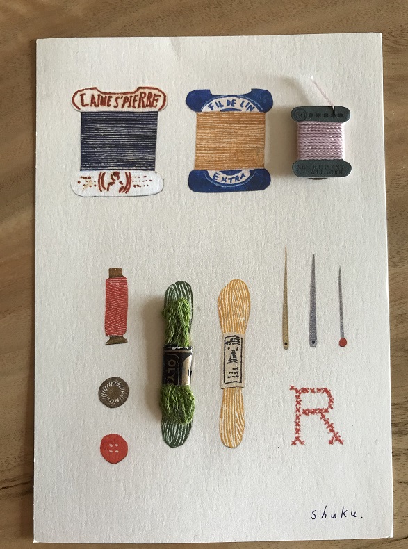 上の刺繍ハガキはもともとのデザイン上、糸が貼られています。測ったら4グラムでした。