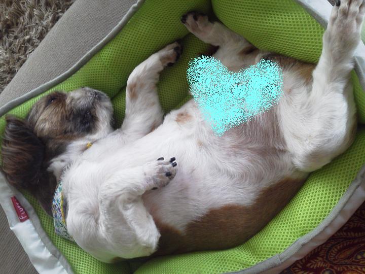 日中はずっと、床か夏用ベッドの中で、こんな格好で寝ているんですけど~。
